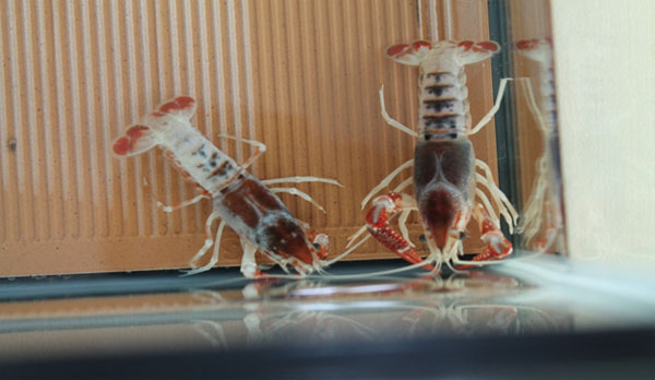 第5回ラグーン観察日記 投稿日時: 2013年4月25日 投稿者: LAGOON 4月18日の14時前頃からザリガニの繁殖が行われました。ケースからオスを水中へ放して2匹の様子を窺っていたがメスが一つの場所から動こうとしません。その間オスはメスの気をひこうとせわしなく動き回っていました。何度か繁殖のチャンスはありましたが、結局2匹共消極的になり、繁殖には至りませんでした。次回に乞うご期待!!