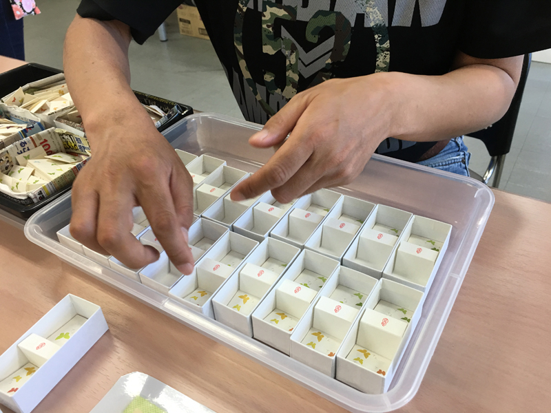 和詩作業は、外紙折りやお香を包む、キャラメルといった