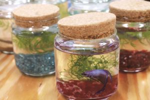 ボトルの中で魚やエビなどを飼育するボトルアクアリウム。魚についての説明や仕組みについても詳しく説明いたしますので、画用紙などにまとめれば夏休みの自由研究として提出できます。
