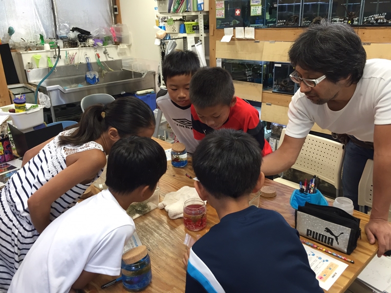 ボトルの中で魚やエビなどを飼育するボトルアクアリウム。魚についての説明や仕組みについても詳しく説明いたしますので、画用紙などにまとめれば夏休みの自由研究として提出できます。