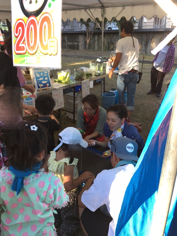 LAGOONブースではボトルに入った生体やマリモの販売と塗り絵やパズルが楽しめる紙製品を販売し、その紙製品を利用した釣りゲームで皆さんに楽しんでいただきました。