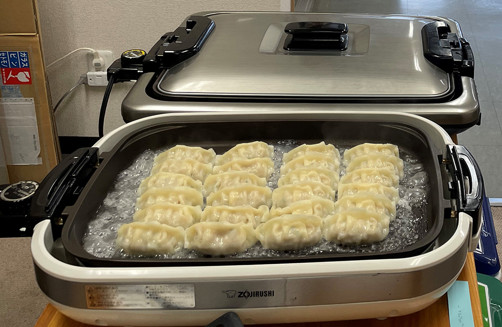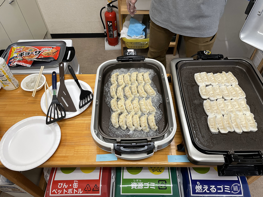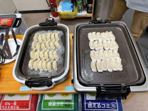 今回は昼食に餃子パーティーをしました。主食は各々持ち寄り、